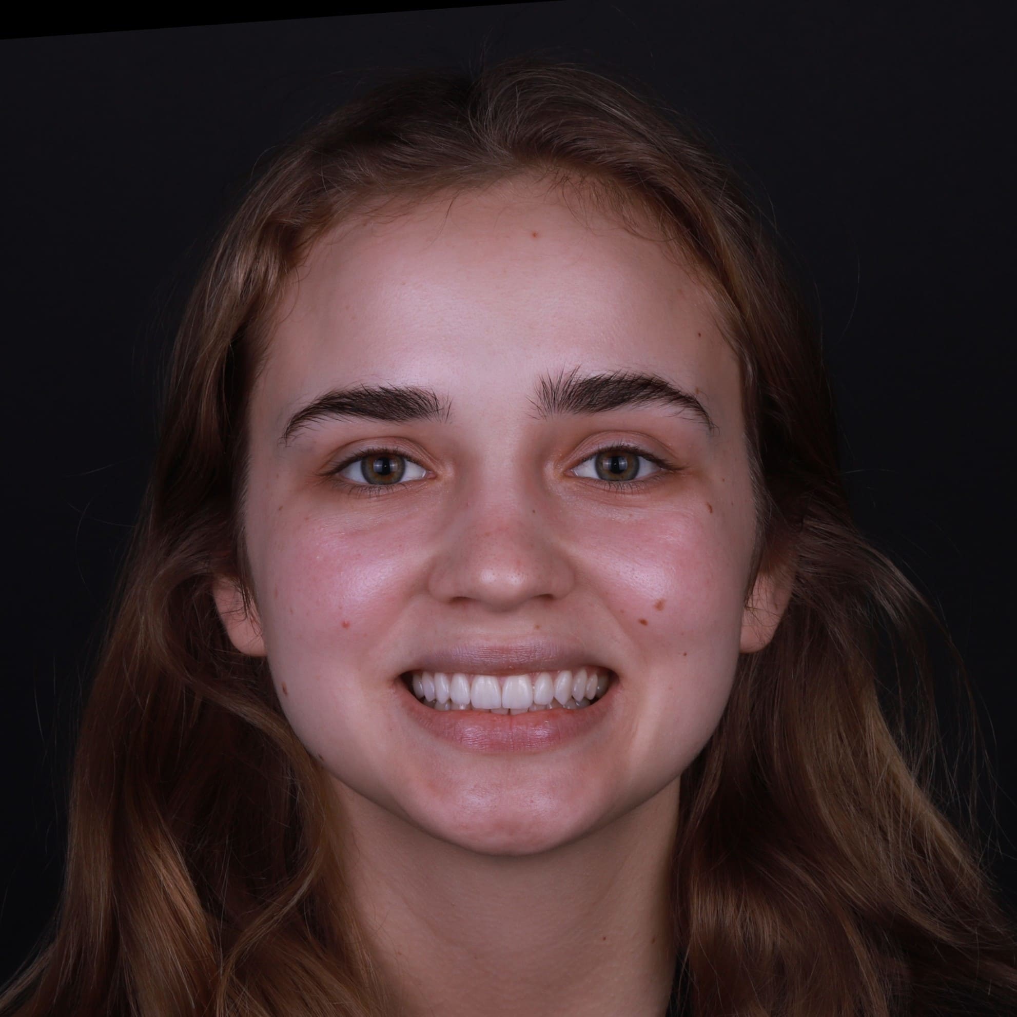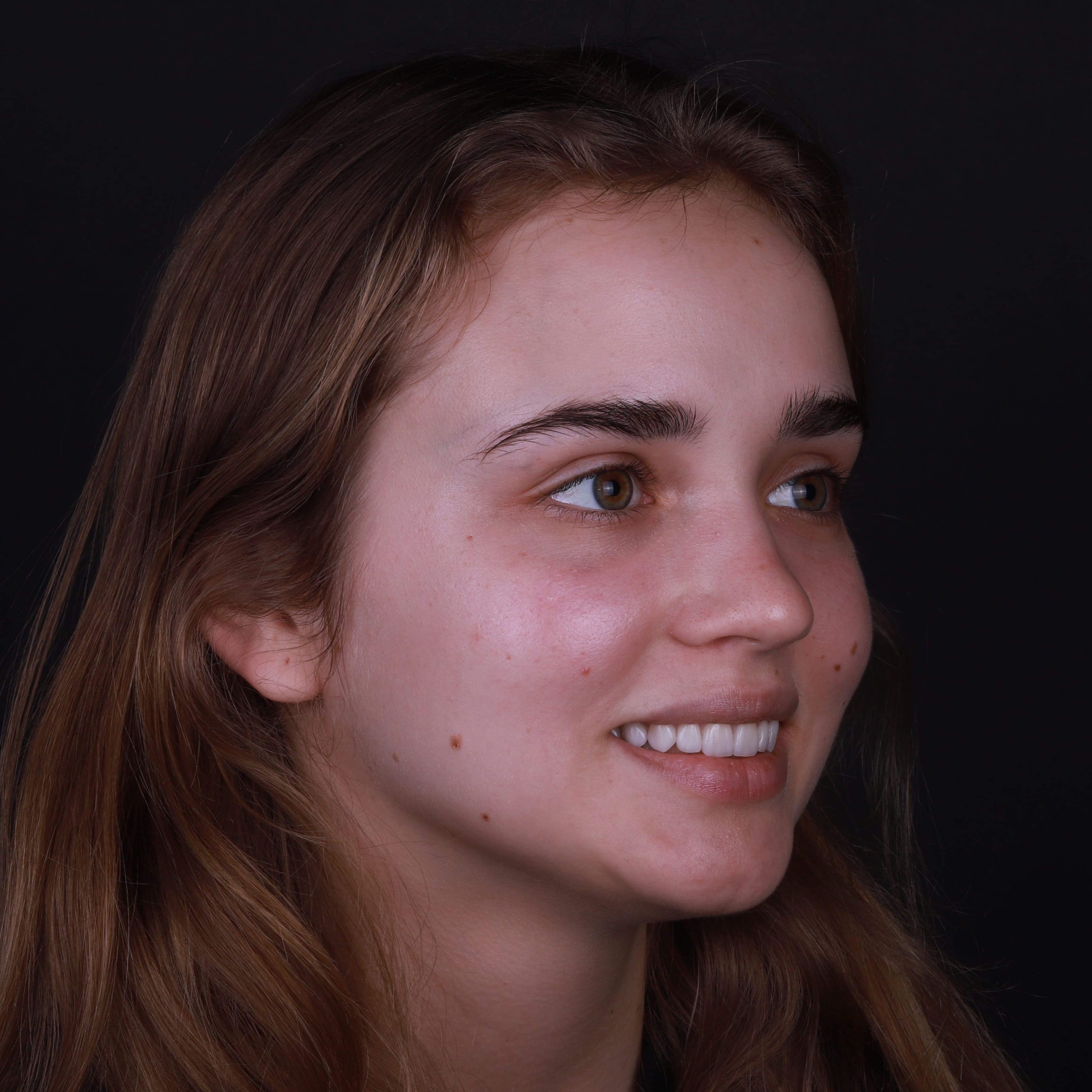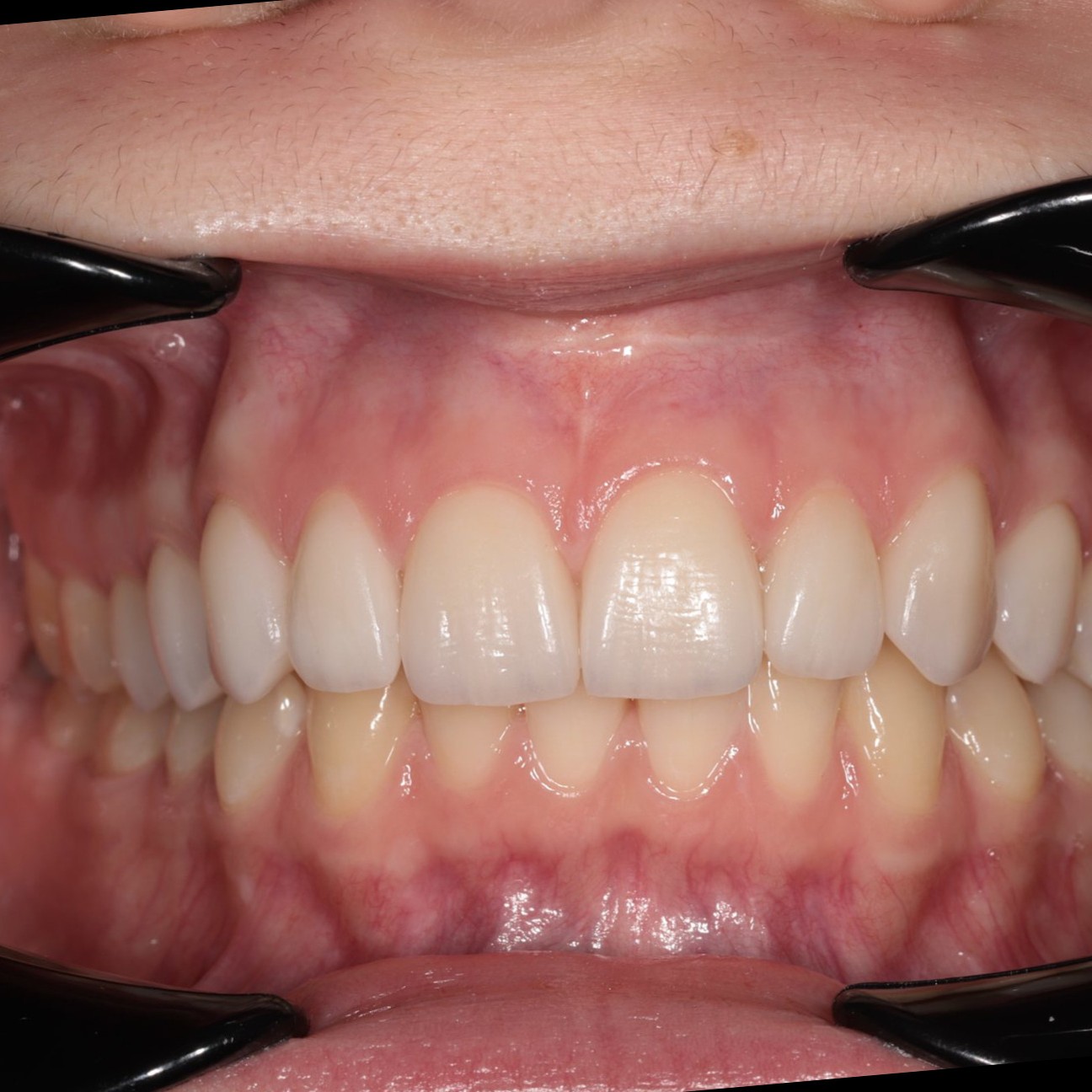 На завершальному етапі ми встановили 10 керамічних реставрацій на передню групу зубів верхньої щелепи. Ми приділили особливу увагу підбору кольору та форми, щоб вони ідеально гармоніювали з відбіленими нижніми зубами та створювали ефект абсолютно природної, але бездоганної посмішки з рівним ріжучим краєм.
