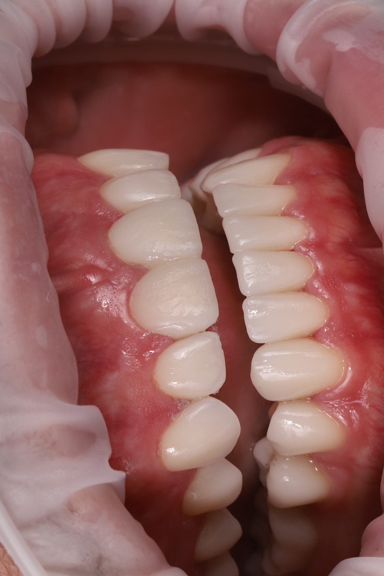 Після санації каріозних уражень до роботи долучився гнатолог. Важливим етапом стало визначення правильної оклюзії (змикання зубів) з урахуванням фізіологічного положення скронево-нижньощелепного суглоба. Це гарантує, що нові зуби будуть не лише гарними, а й зручними у щоденному житті.